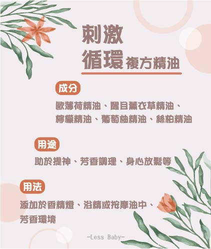 4. 本商品為純精油,請依使用狀況調和植物油後使用,使用前請先在小面積肌膚上試用,使用後若有不適請即刻停止使用,並諮詢醫師。