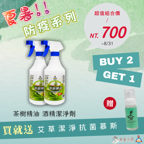 鵝媽媽防疫系列※不適用賣場滿千免運(茶樹精油酒精潔淨劑 【500ml】2罐+艾草潔淨抗菌慕斯【50ml】)